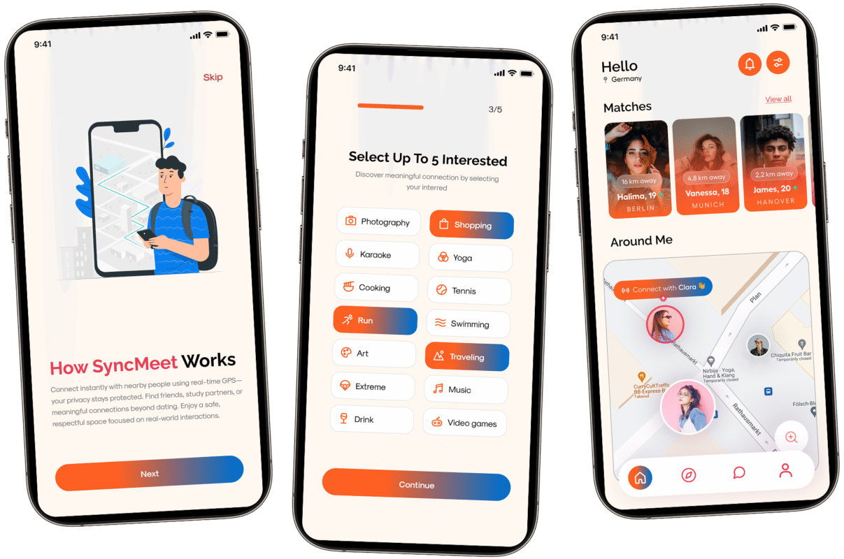 At SyncMeet, we believe genuine human connections shouldn’t be limited by distance or fake profiles. Our platform helps you discover real people nearby — whether you’re looking for friendship, companionship, or meaningful relationships. Powered by real-time location technology, SyncMeet updates dynamically as you move, showing who’s truly around you. No waiting, no guessing — just authentic connections, instantly.